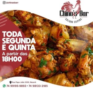 Toda segunda feira e quinta feira galinha caipira em chinas’bar no bairro Nazaré